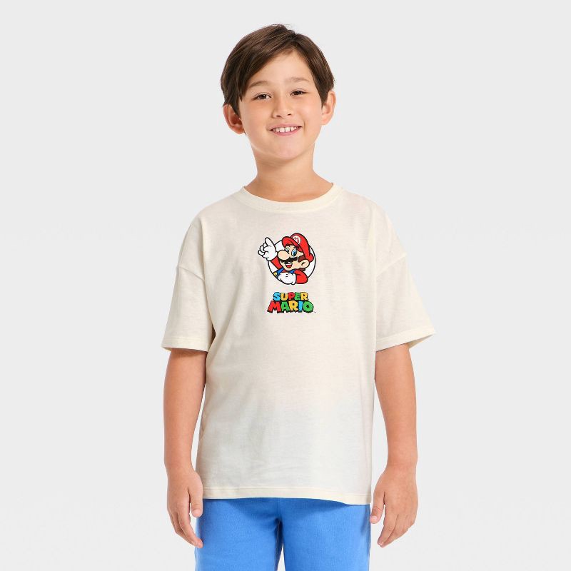 Level up his everyday style with this Boys' Super Mario Graphic T-Shirt. Made from soft, breathable fabric, it keeps him comfortable for school days, playtime, or weekend fun. The ivory color offers a…