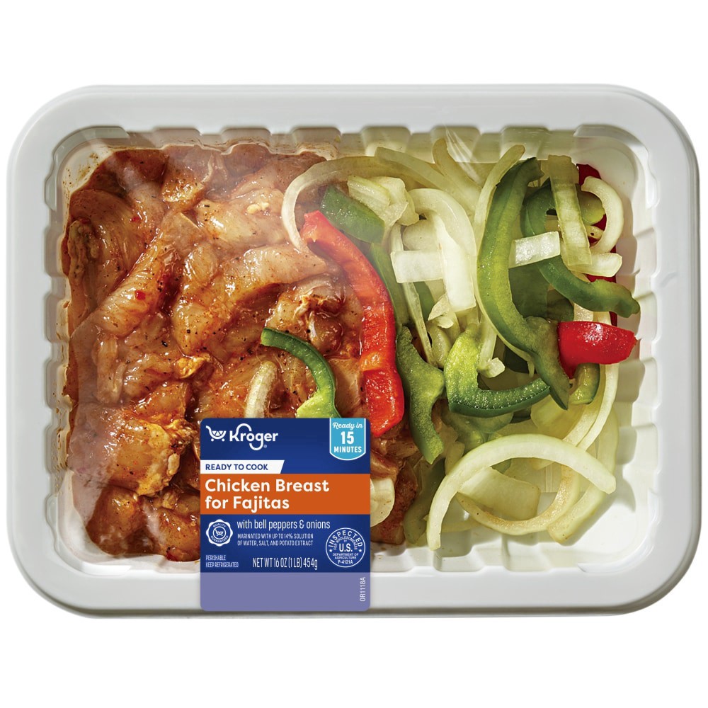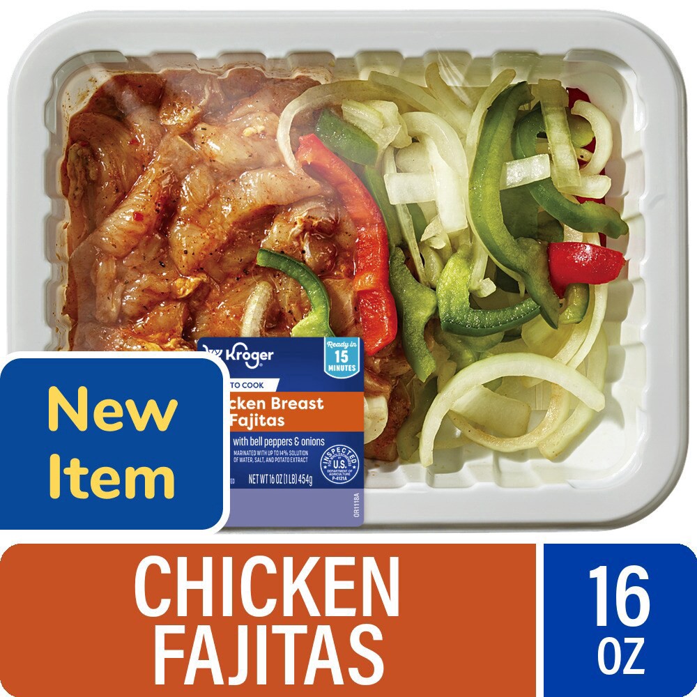 Kroger® Chicken Breast Fajitas with Bell Peppers and Onions are a mealtime game changer! Crispy bell peppers and onions mix with tender chicken breast strips for a delicious feast! It's a quick and ea…