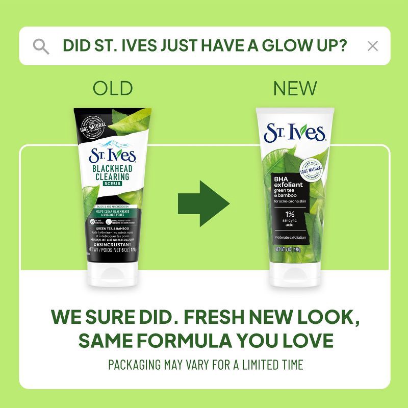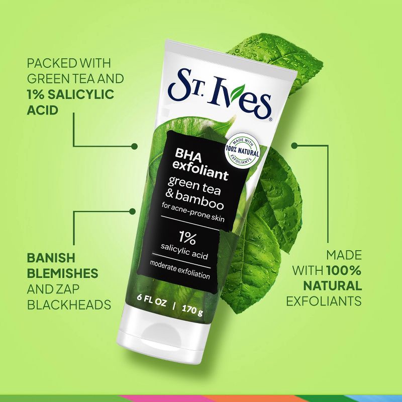 - Show those blackheads the door with St. Ives BHA Green Tea & Bamboo Face Exfoliant for acne prone skin and kick those pesky blemishes to the curb