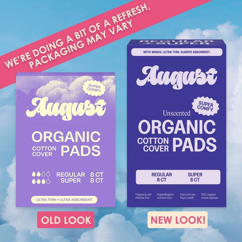 SOFT & BREATHABLE: Made from ethically-sourced, 100% certified organic cotton topsheet, August pads ensure a soft, breathable layer that keeps you comfortable and irritation-free.STAY DRY & SECURE: Wi…