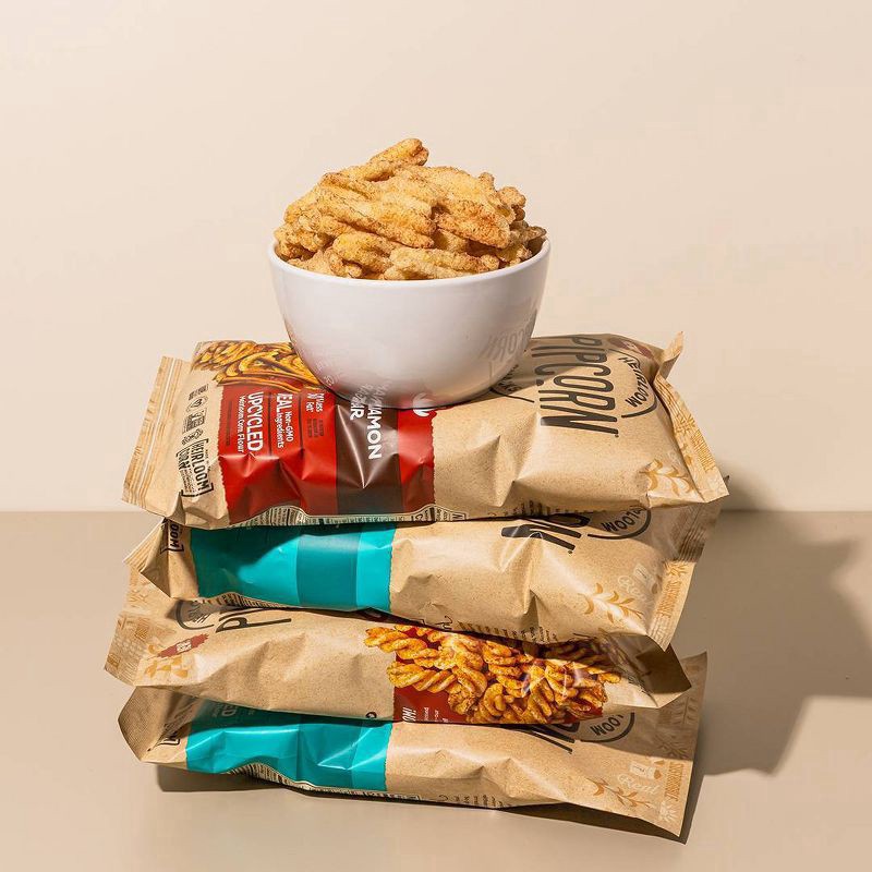 Non-GMO Corn Twists (Upcycled Ground Yellow Corn, Degermed Corn Flour, Cornstarch, Salt), Cinnamon Sugar Blend (Cane Sugar, Cinnamon, Salt, and Less than 2% Sunflower Oil), Sunflower Oil, Rosemary Ext…