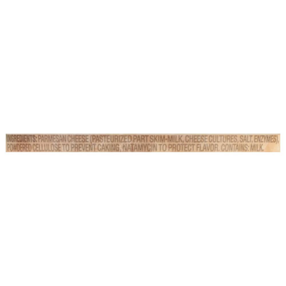 Parmesan Cheese (Pasteurized Part Skim-Milk, Cheese Cultures, Salt, Enzymes) Powdered Cellulose to Prevent Caking, Natamycin to Protect Flavor.