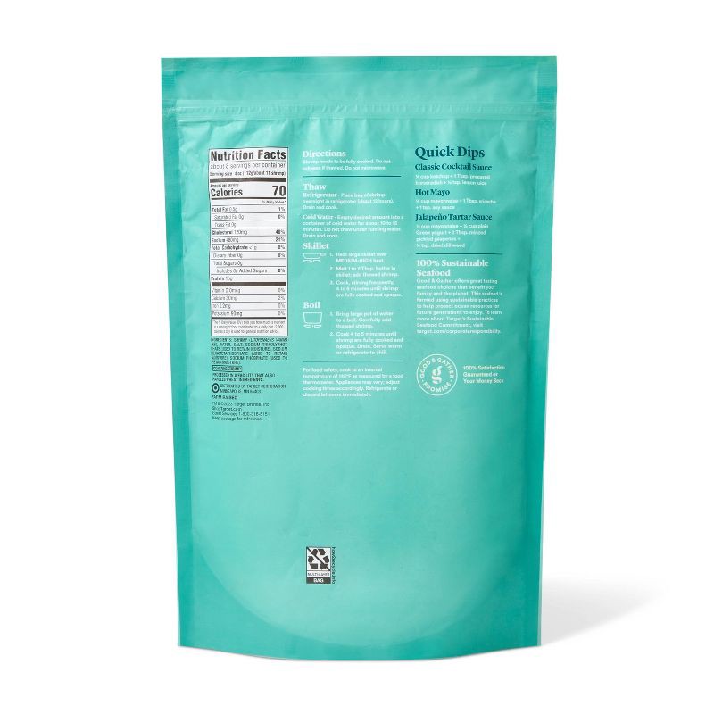 Make enjoying your favorite seafood easier with a bag of Tail-Off Peeled & Deveined Large Raw Shrimp from Good & Gather™. Frozen for long-lasting storage, this bag of shrimp includes two pounds — 41–5…