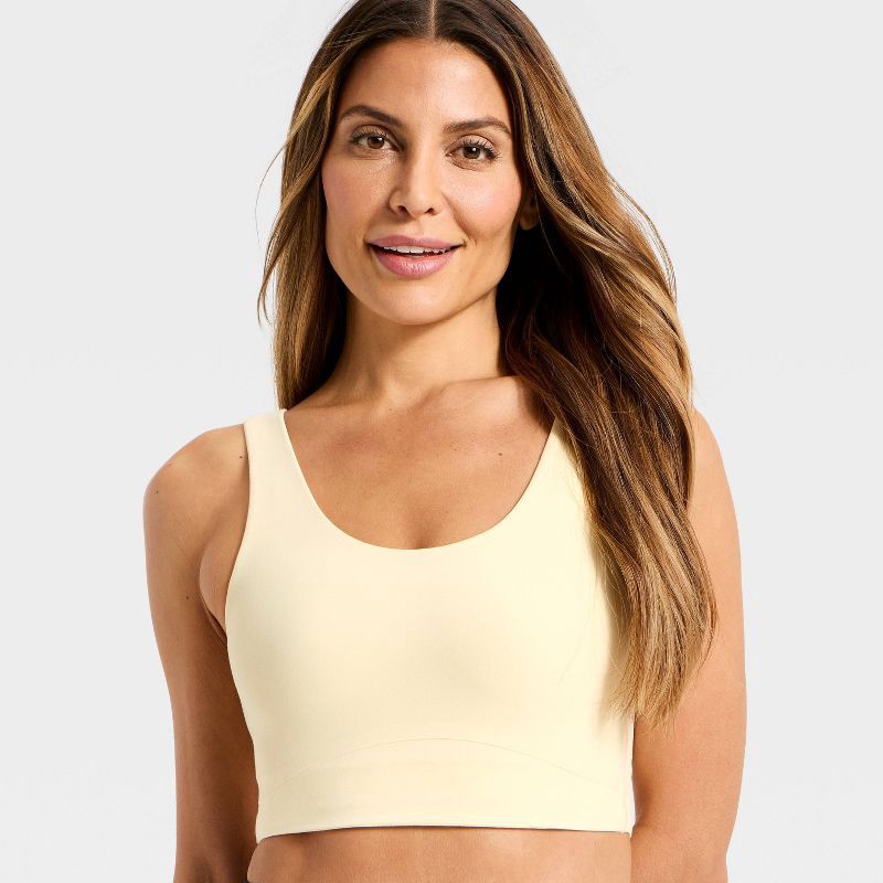 - Must-have features: longline silhouette, bonded edge, sewn-in cups, pullover design