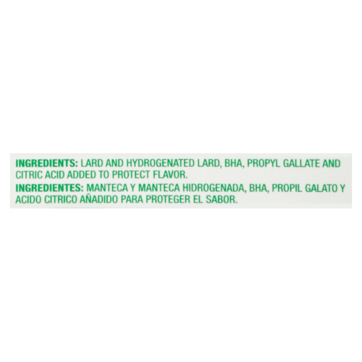 Lard and Hydrogenated Lard, BHA, Propyl Gallate and Citric Acid Added to Protect Flavor.