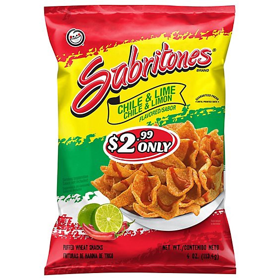 Sabritones Chile & Lime Puffed Wheat Snacks Plastic Bag - 4 Oz