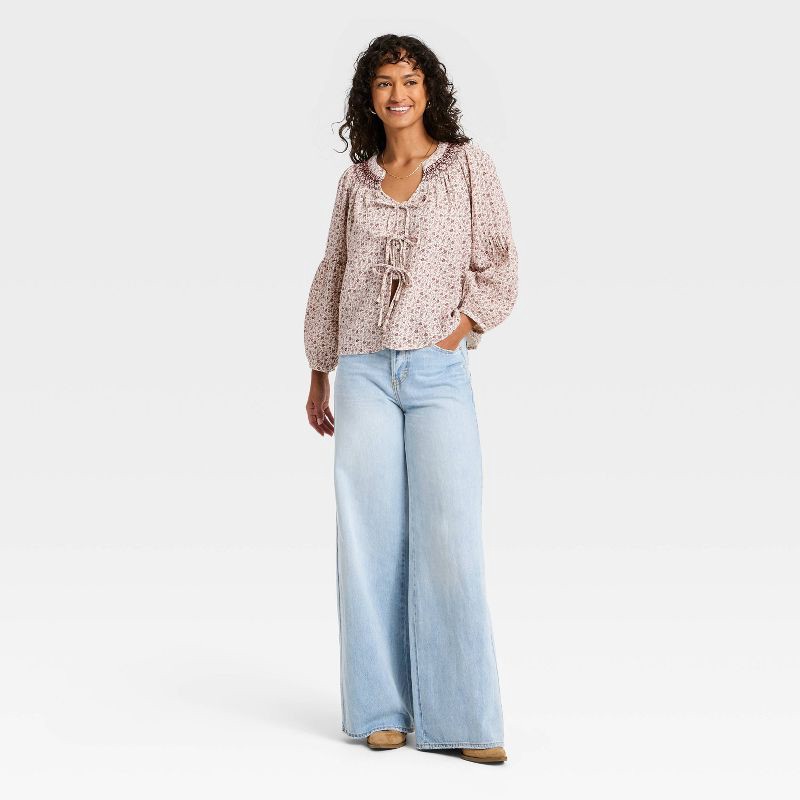Whether you're dressing for a coffee date or a laid-back gathering, this Raglan Long-Sleeve Tie-Front Blouse from Universal Thread™ is a perfect pick. Made of 100% cotton with smocked detailing, this …