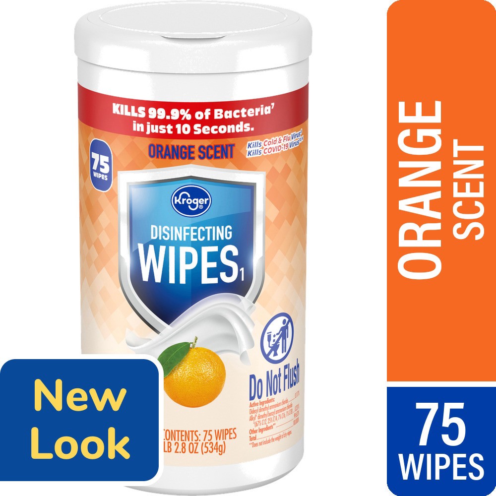Kroger® Orange Scent Disinfecting Wipes kill 99.9% of bacteria in just 10 secondsˆ. Also kills cold & flu virus , and the Covid-19 virus˚, while still being gentle on surfaces. Wipe away stubborn grea…