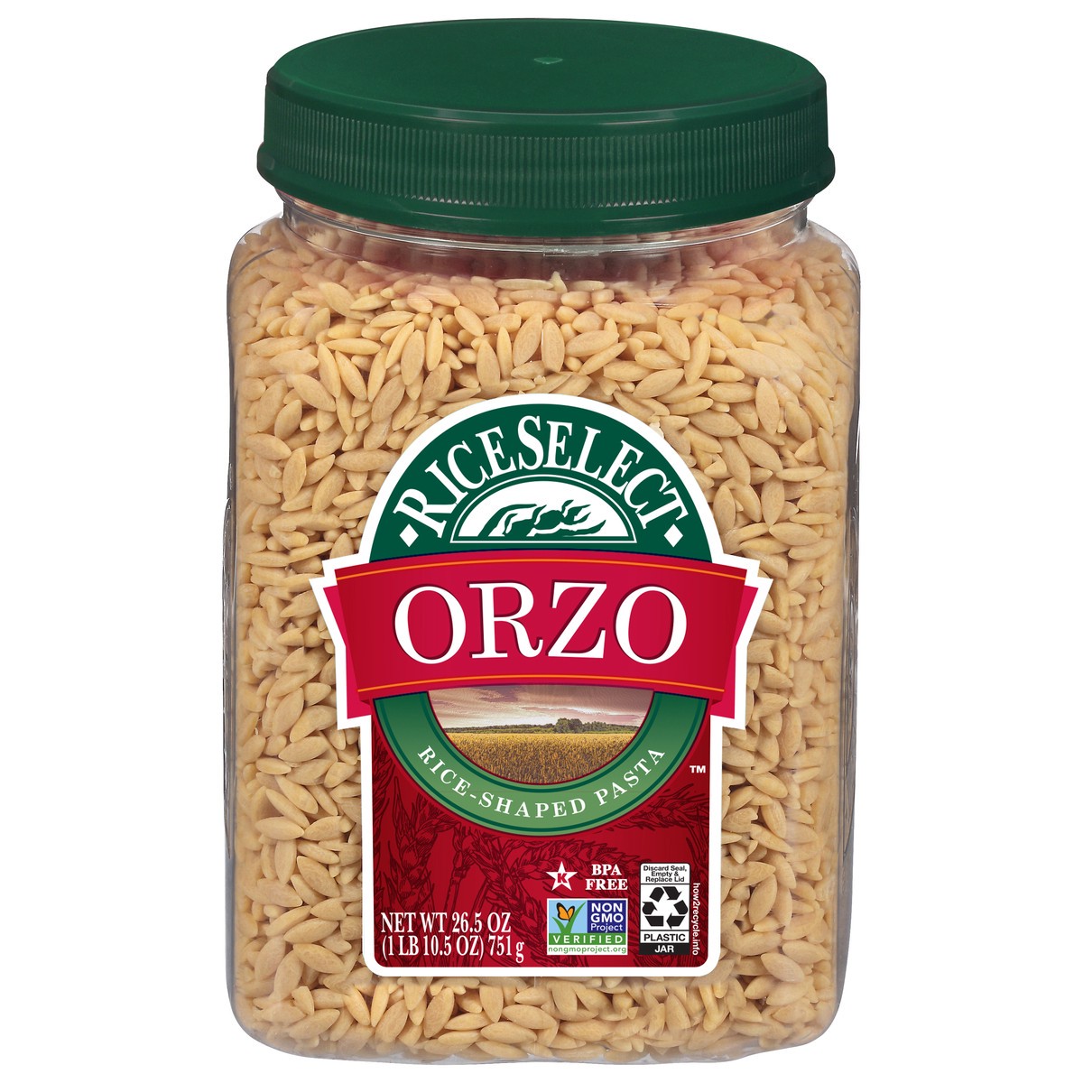 - One 26.5 oz BPA-free jar of RiceSelect Orzo