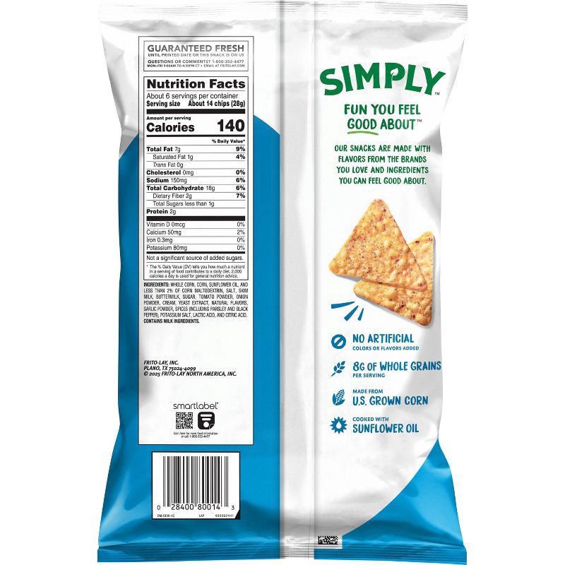 - Simply Doritos Zesty Cool Ranch Tortilla Chips have 8g of whole grains per serving and are cooked with sunflower oil