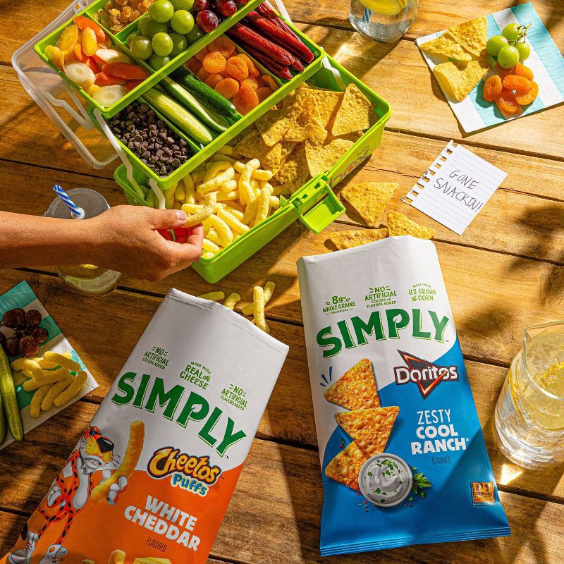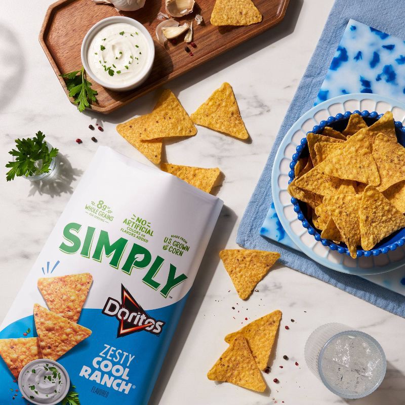 - Simply Doritos Zesty Cool Ranch flavored Tortilla Chips are made from U.S. grown corn with no artificial colors or flavors added