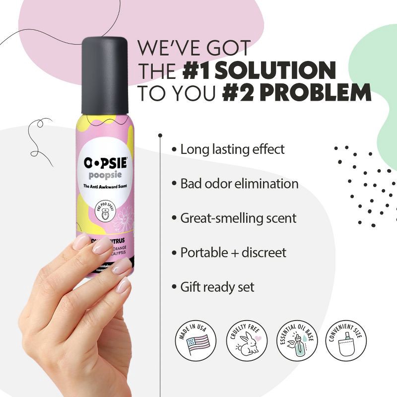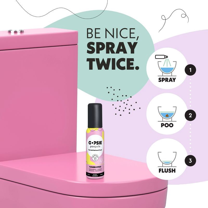 Oopsie Poopsie Toilet Odor Eliminator Toilet Spray - Flower Citrus - 2 fl oz: Ammonia-Free, Aluminum-Free, Dye-Free, Paraben-Free, Sulfate-Free