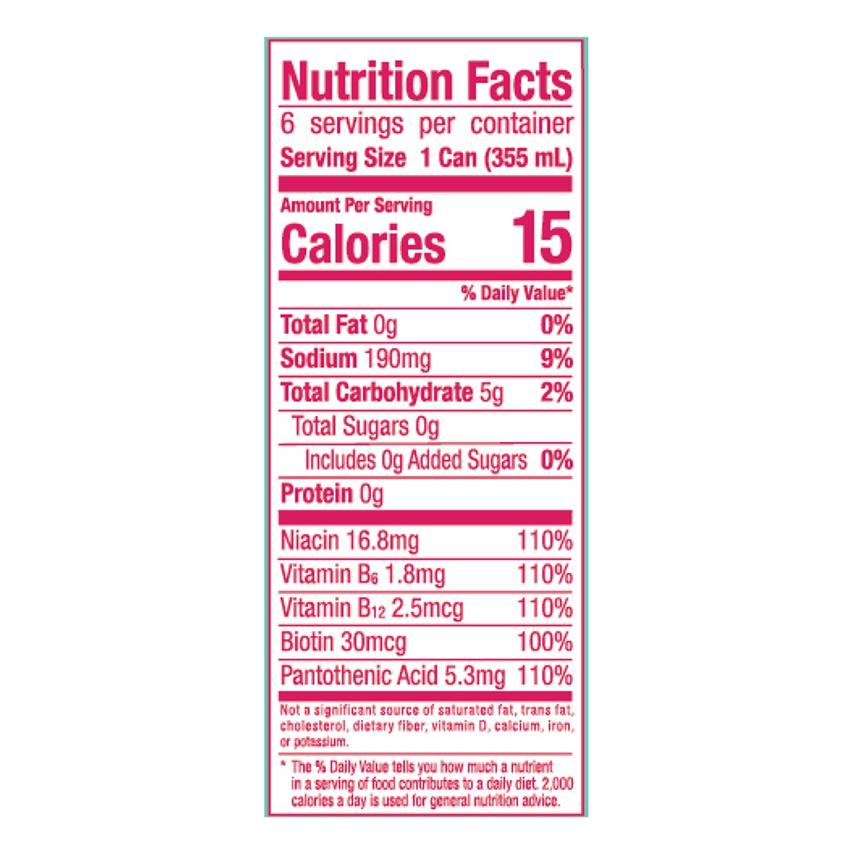 Carbonated Water, Citric Acid, Taurine, Sodium Citrate, L-Theanine, Caffeine, Malic Acid, Sucralose, Sodium Benzoate, Gum Arabic, L-Carnitine L-Tartrate, Natural Flavors, Vegetable Juice (for Color) (…