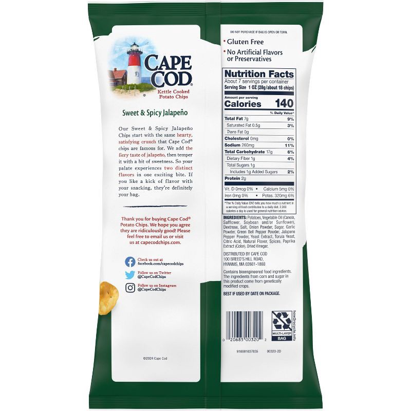 - Includes one (1) 7.5-ounce bag of Cape Cod Sweet & Spicy Jalapeno Potato Chips