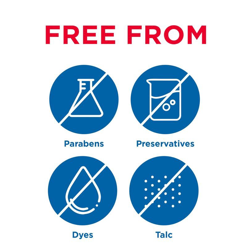 Health Facts: Hypoallergenic, Paraben-Free, Phthalate-Free, Dye-Free, Contains Zinc Oxide, Aluminum-Free