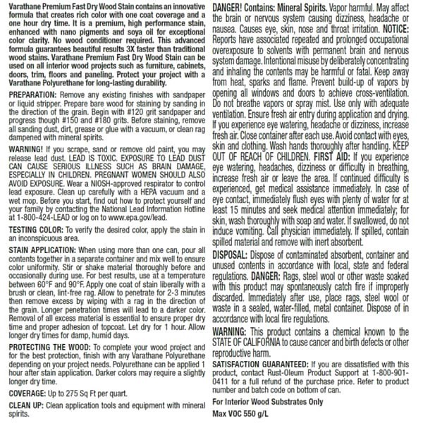 Varathane Premium Fast Dry Wood Stains contain unique nano pigments for intense color and exceptional wood grain enhancement. Fast drying formula is perfect for all interior wood projects, including f…