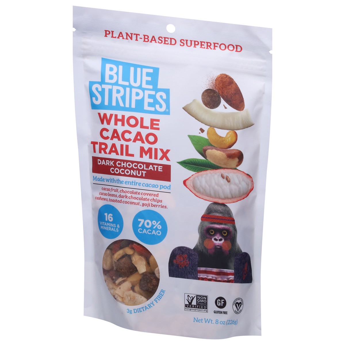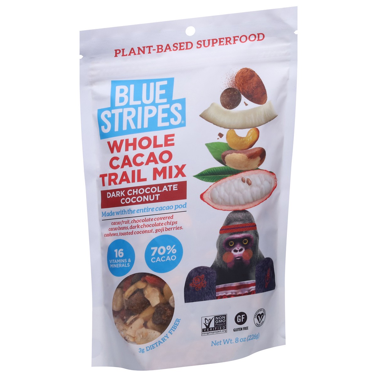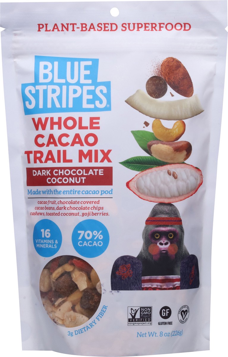 Blue Stripes Whole Cacao Dark Chocolate Coconut Trail Mix 8 oz