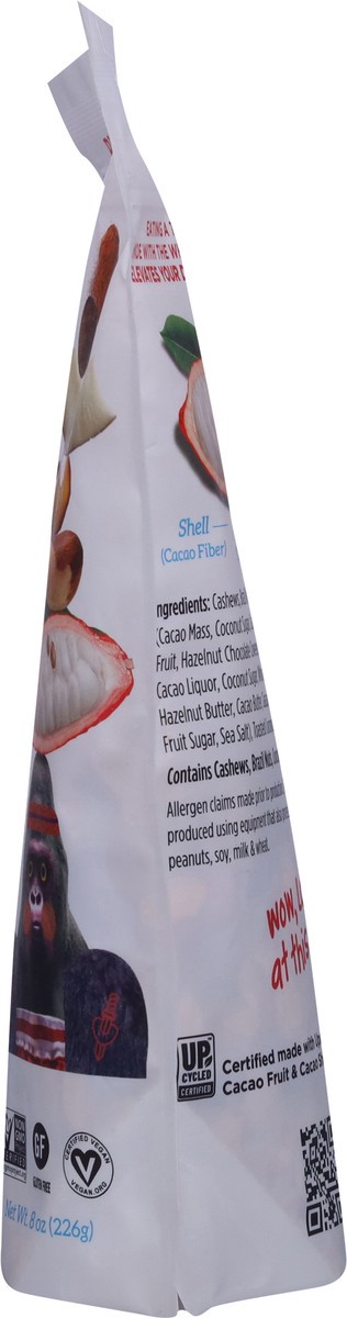 Cashews, Brazil Nuts, 70% Chocolate Chips (Cacao Mass, Coconut Sugar, Cacao Butter), Dried Cacao Fruit, Hazelnut Chocolate Covered Cacao Beans (100% Cacao Liquor, Coconut Sugar, Whole Cacao Beans, Haz…