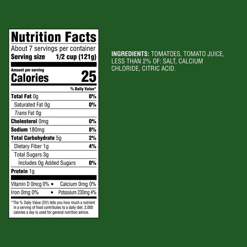 TOMATOES, TOMATO JUICE, LESS THAN 2% OF: SALT, CALCIUM CHLORIDE, CITRIC ACID.