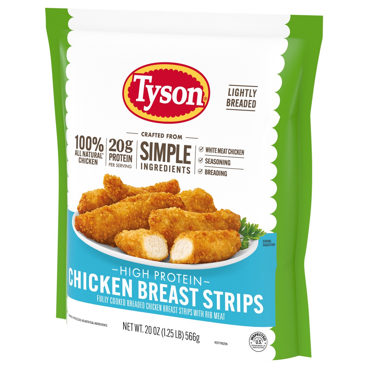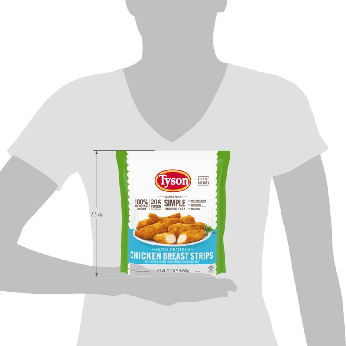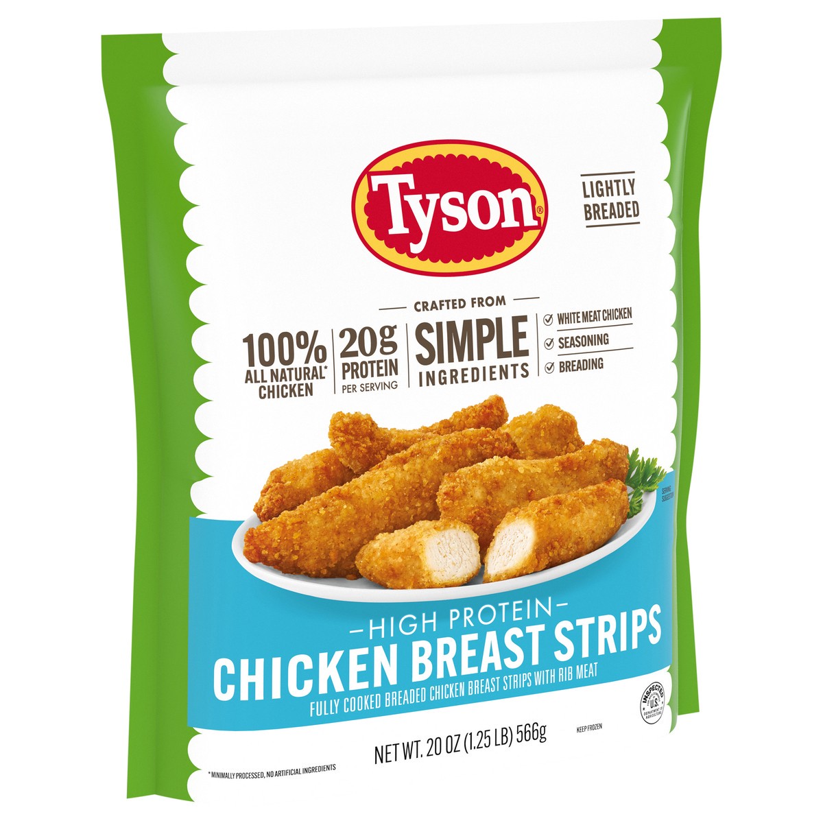 - 100% ALL NATURAL* CHICKEN: One 20 oz resealable pack of Tyson Simple Ingredient Boneless Chicken Strips; fully cooked frozen appetizers