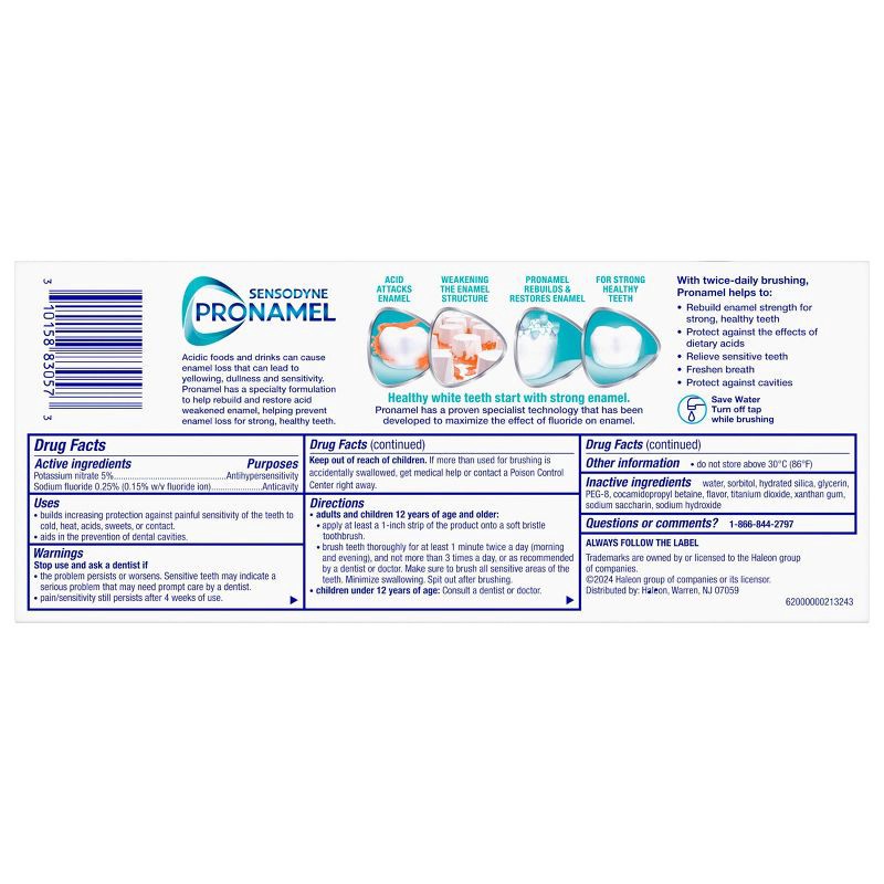 - Two 4 oz tubes of Sensodyne Pronamel Gentle Whitening Enamel Toothpaste for Sensitive Teeth - Packaging May VarySensitive toothpaste that remineralizes teeth to protect against acid erosionProtects your teeth from pain triggers for lasting reliefHelps prevent cavities and improves your overall tooth enamel healthTeeth whitening toothpaste that polishes away stains for brighter teethMedicare Advantage OTC (MAOTC) eligible. *OTC benefits and eligible products vary by plan. Check your plan for specific details.