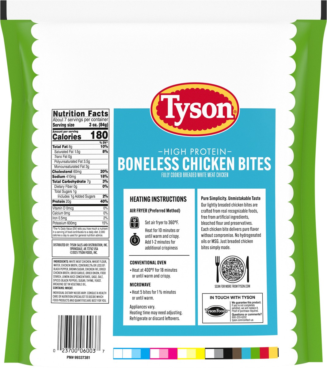 Tyson Simple Ingredient Boneless Chicken Bites Cooked Frozen Appetizers, 20 oz