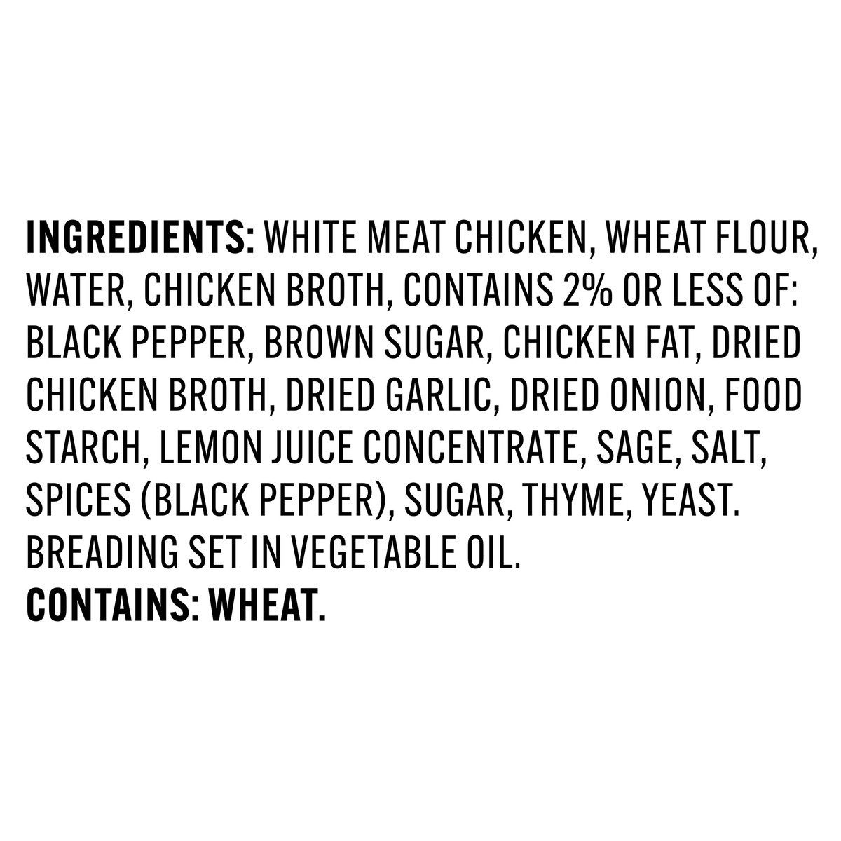 White Meat Chicken, Wheat Flour, Water, Chicken Broth, Contains 2% or Less of: Black Pepper, Brown Sugar, Chicken Fat, Dried Chicken Broth, Dried Garlic, Dried Onion, Food Starch, Lemon Juice Concentr…