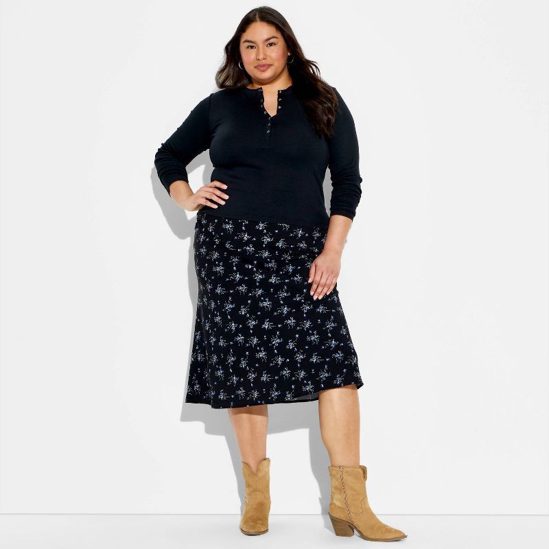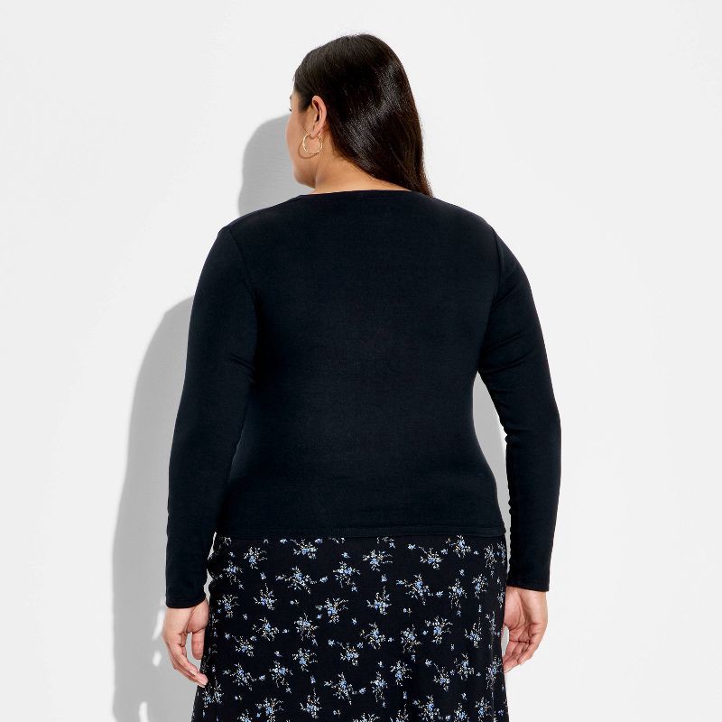 Women's Long Sleeve Ribbed Henley Shirt - Wild Fable™ Black XXL