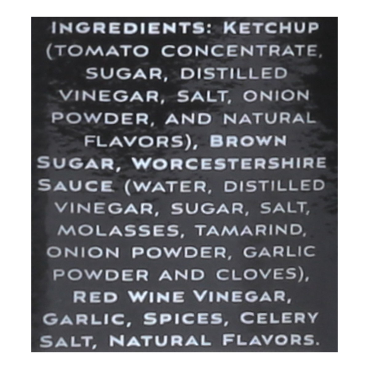 Ketchup (Tomato Concentrate, Sugar, Distilled Vinegar, Salt, Onion Powder, and Natural Flavors), Brown Sugar, Worcestershire Sauce (Water, Distilled Vinegar, Sugar, Salt, Molasses, Tamarind, Onion Pow…