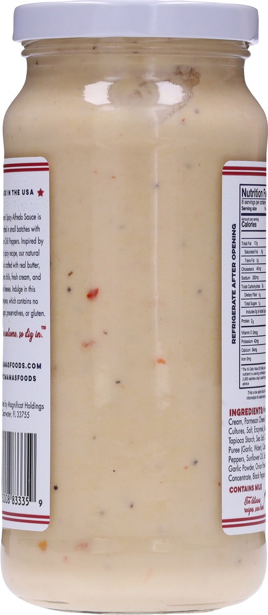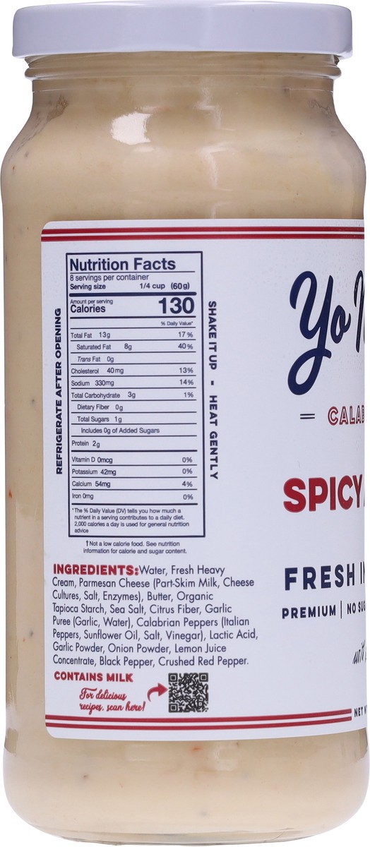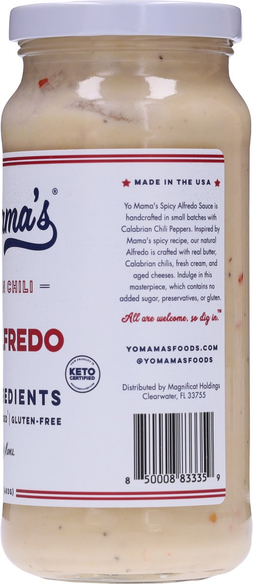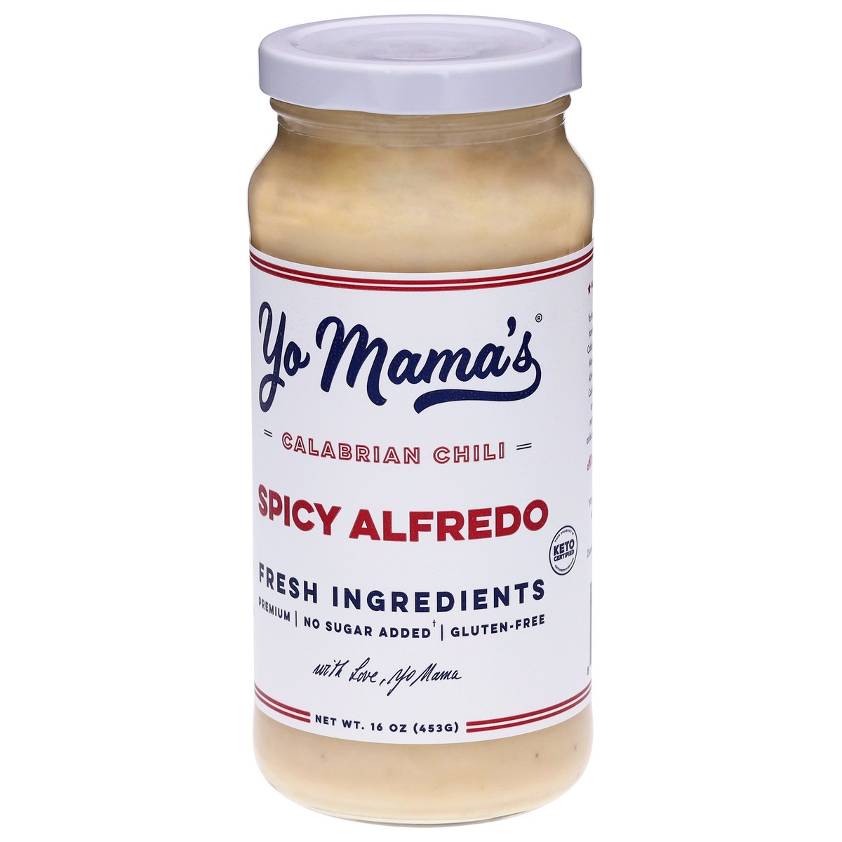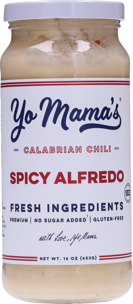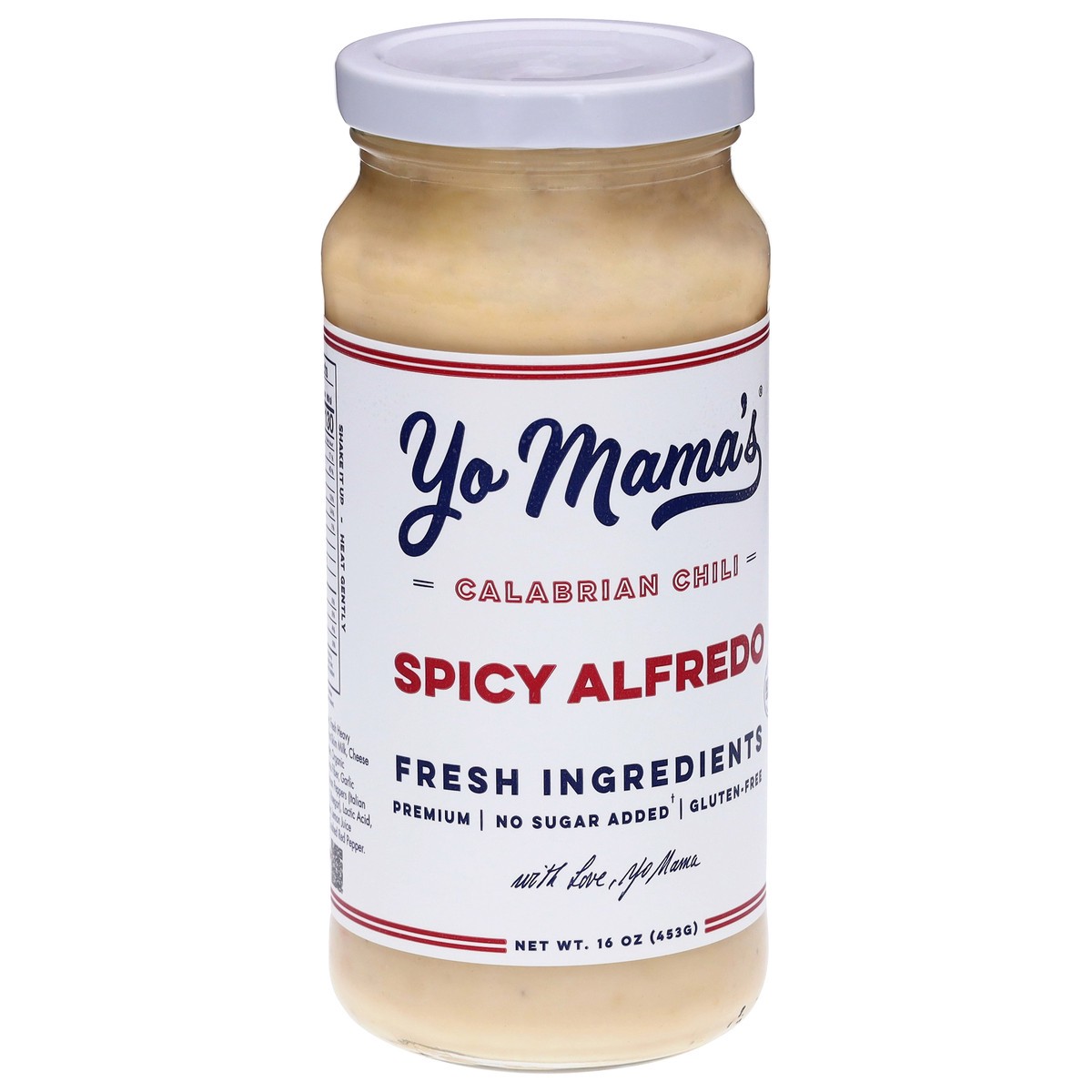 Yo Mama's Spicy Alfredo Sauce is inspired by Mama's homemade recipe, handcrafted in small batches. Made with Calabrian Chili, real butter, cream, and Parmesan cheese, our recipe is free from added pre…