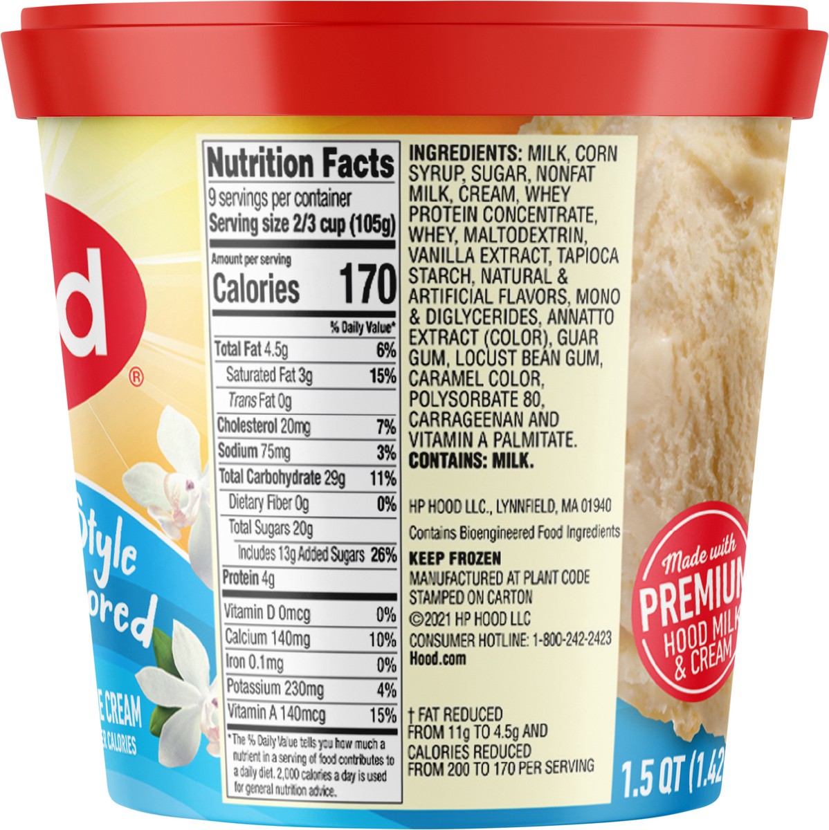 Milk\, Corn Syrup\, Sugar\, Nonfat Milk\, Cream\, Whey Protein Concentrate\, Whey\, Maltodextrin\, Vanilla Extract\, Tapioca Starch\, Natural & Artificial Flavors\, Mono & Diglycerides\, Annatto Extra…