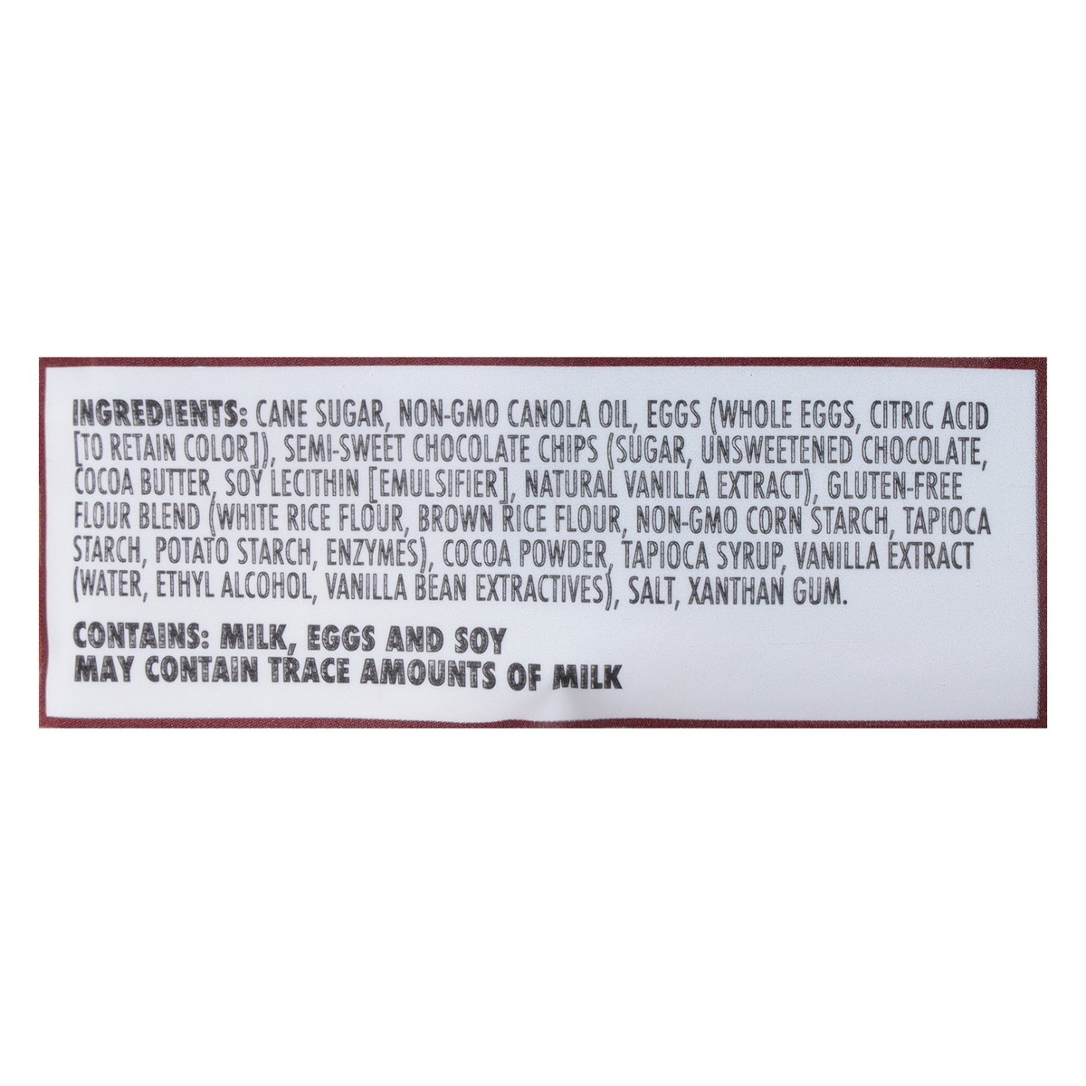 Cane Sugar, Non-GMO Canola Oil, Eggs (Whole Eggs, Citric Acid [to Retain Color]), Semi-Sweet Chocolate Chips (Sugar, Unsweetened Chocolate, Cocoa Butter, Soy Lecithin [Emulsifier], Natural Vanilla Ext…