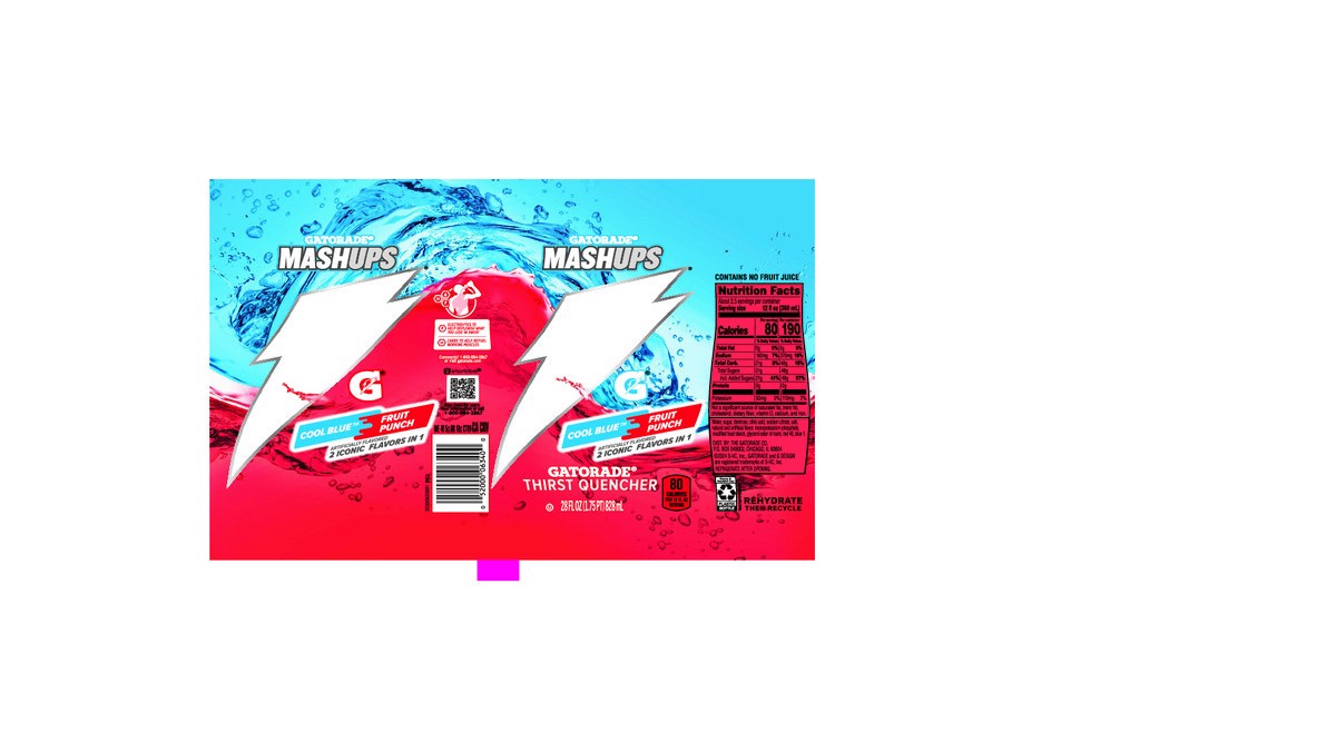 Gatorade Mashups Thirst Quencher Cool Blue Fruit Punch Artificially Flavored 28 Fl Oz