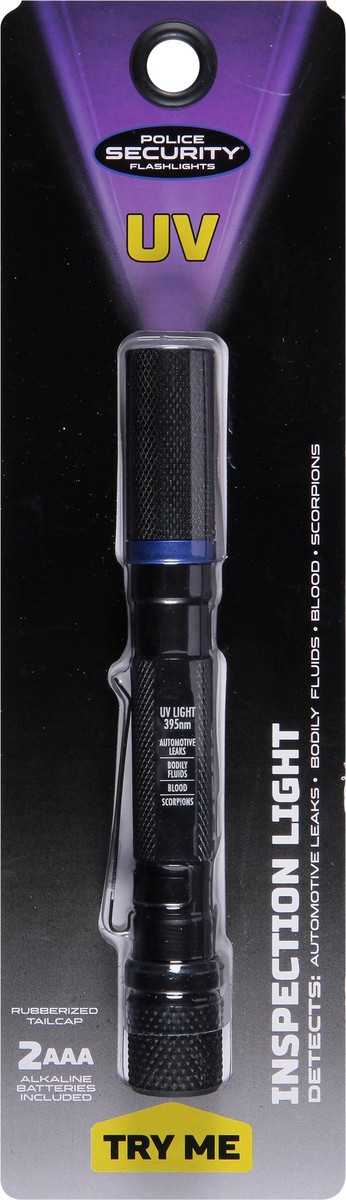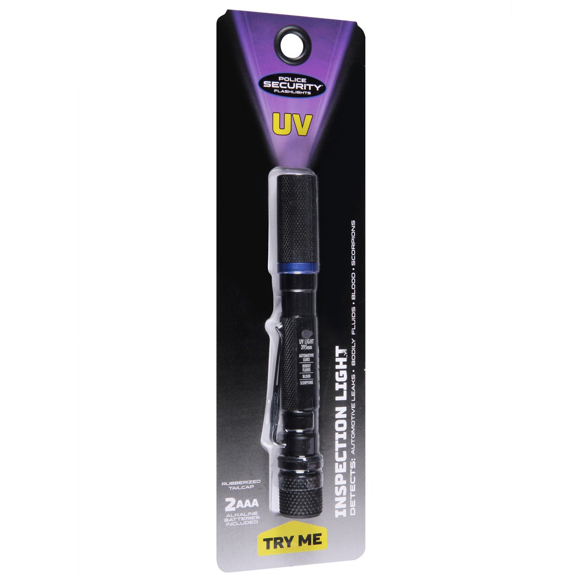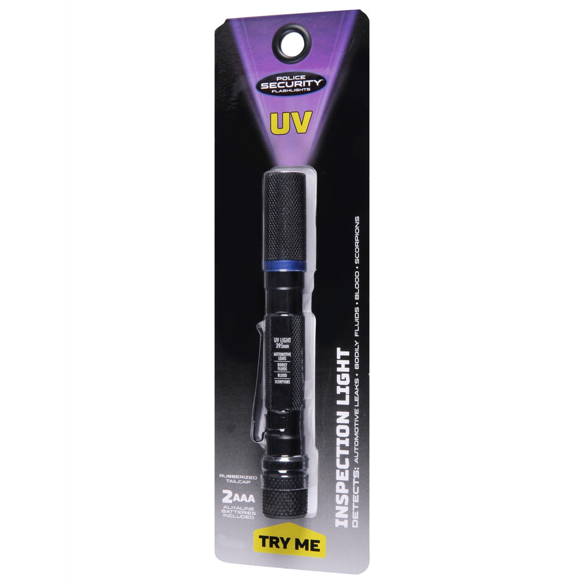 Police Securitys Ultraviolet Inspection Light is the perfect tool for detecting automotive leaks, pet urine, and blood. Its constructed of lightweight aluminum and is powered by 2 AAA batteries (inclu…