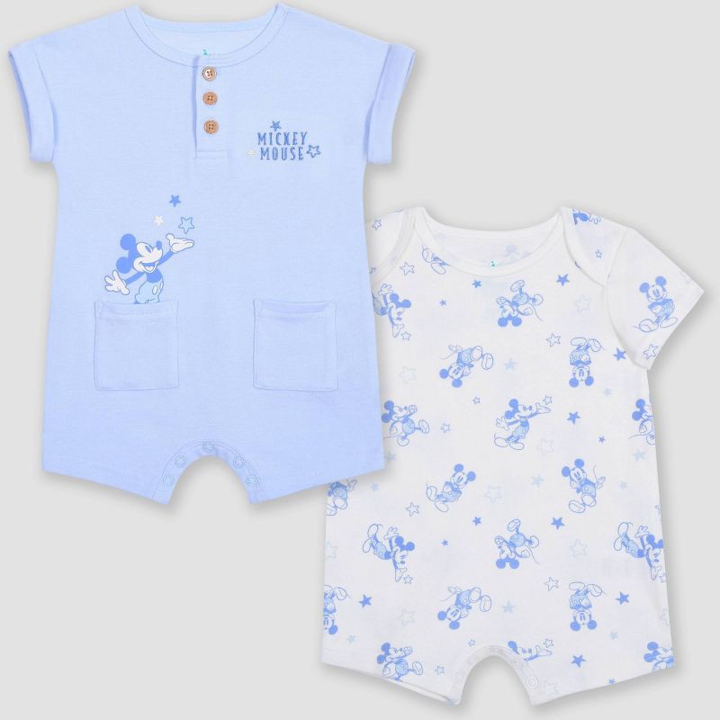 Baby Boys' 2pk Disney Mickey Mouse Romper - Blue 12M