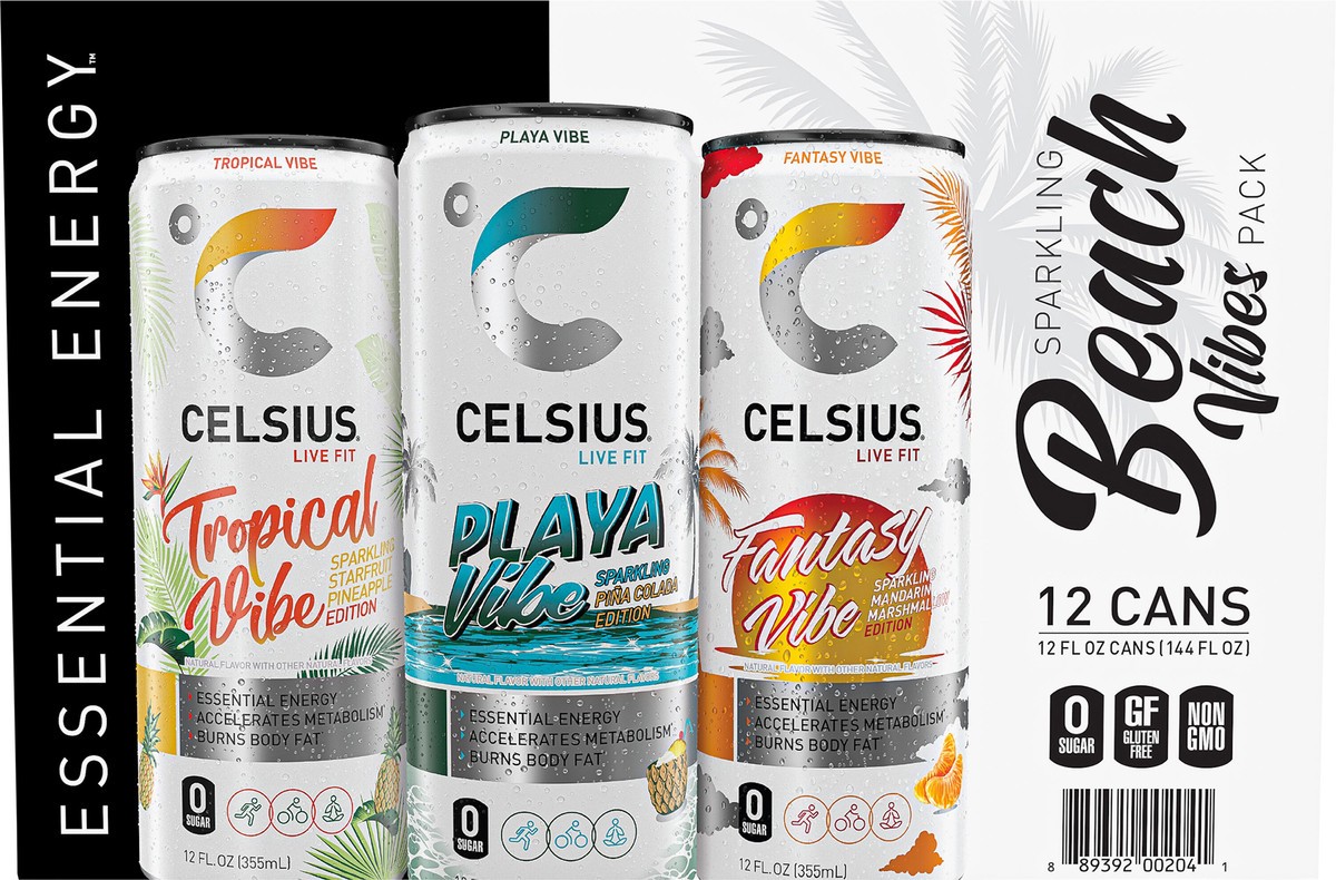 Celsius Live Fit Sparkling Tropical Vibe/Playa Vibe/Fantasy Vibe Energy Drink Beach Vibes Pack 12 - 12 fl oz Cans