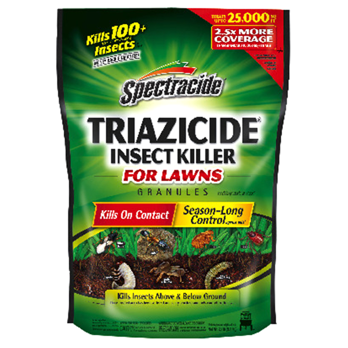 Kills 100+ types of lawn-damaging insects as listed. Treats up to 12,500 sq ft. 25x more coverage than standard 5,000 sq ft bags. For outdoor use around the home only. Chinch bugs. Ants (Excluding har…