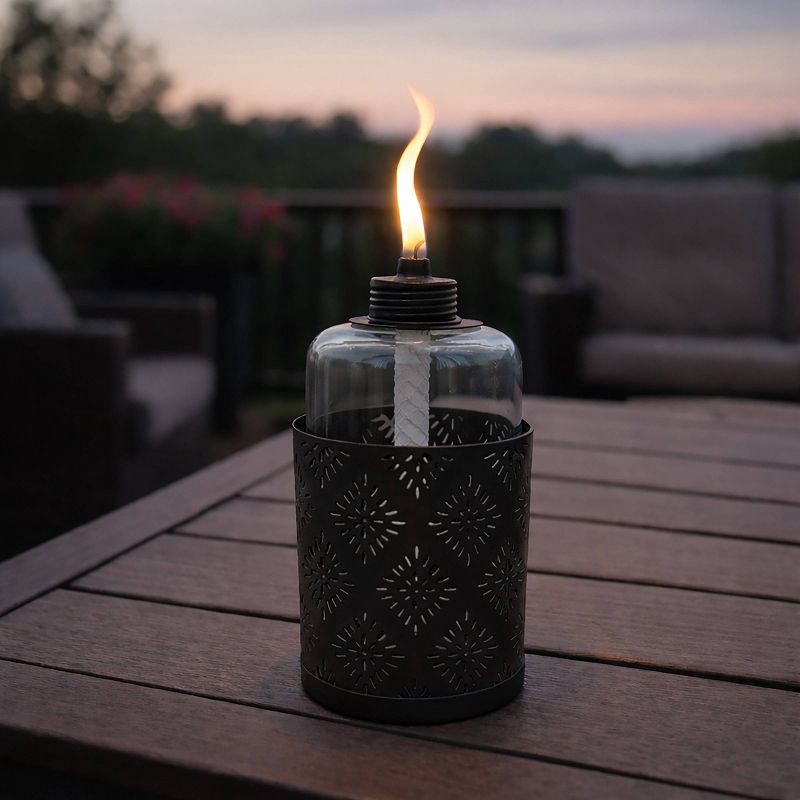 Turn your patio into a warm and inviting outdoor retreat with the Patio Essentials Diamond Tabletop Torch. Featuring a textured metal vessel paired with a sleek clear glass canister, this tabletop tor…