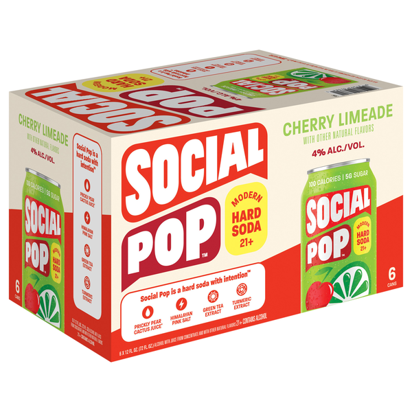 slide 1 of 1, Social Pop Modern Hard Soda, Cherry Limeade - 6 x 12 fl oz, 6 ct