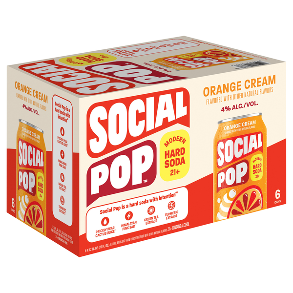 Social Pop Modern Hard Soda, Orange Cream (12 fl. oz. Can, 6pk)