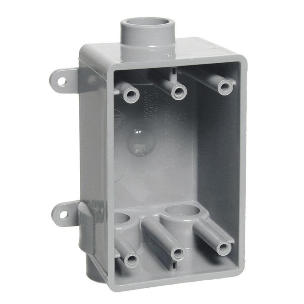 For use with PVC for multiple through-circuit terminations. Made of durable PVC material that will not rust, corrode or conduct electricity. Detachable mounting feet provide easy mounting. Box takes s…