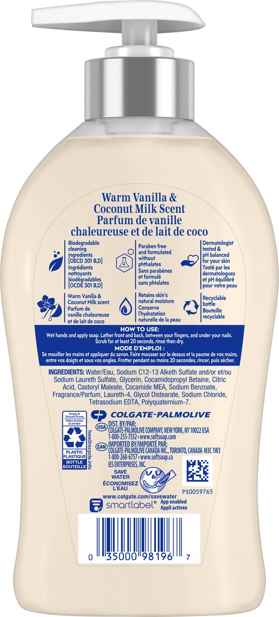 From the #1 liquid hand soap brand†, comes a deeply moisturizing hand soap in a Warm Vanilla & Coconut Milk scent with a label that you''ll want to show off on your sink. Softsoap liquid hand soap in …