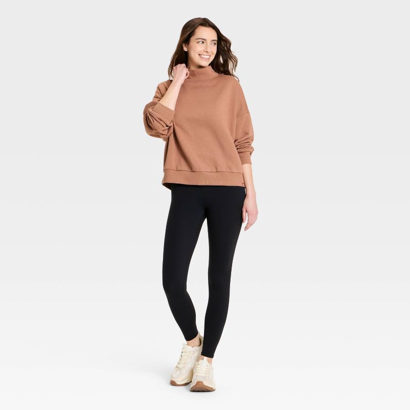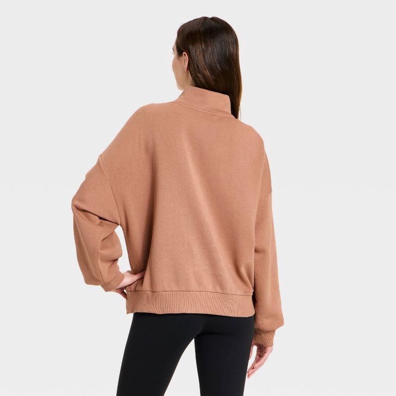 Women's Mock Neck Sweatshirt - JoyLab™ Light Brown L