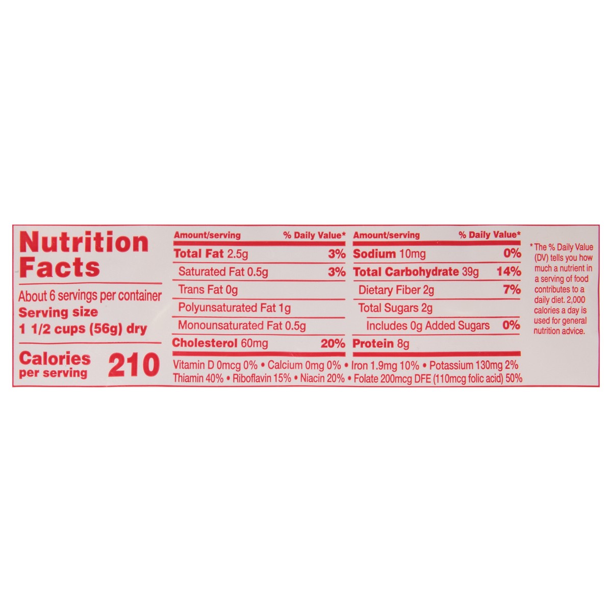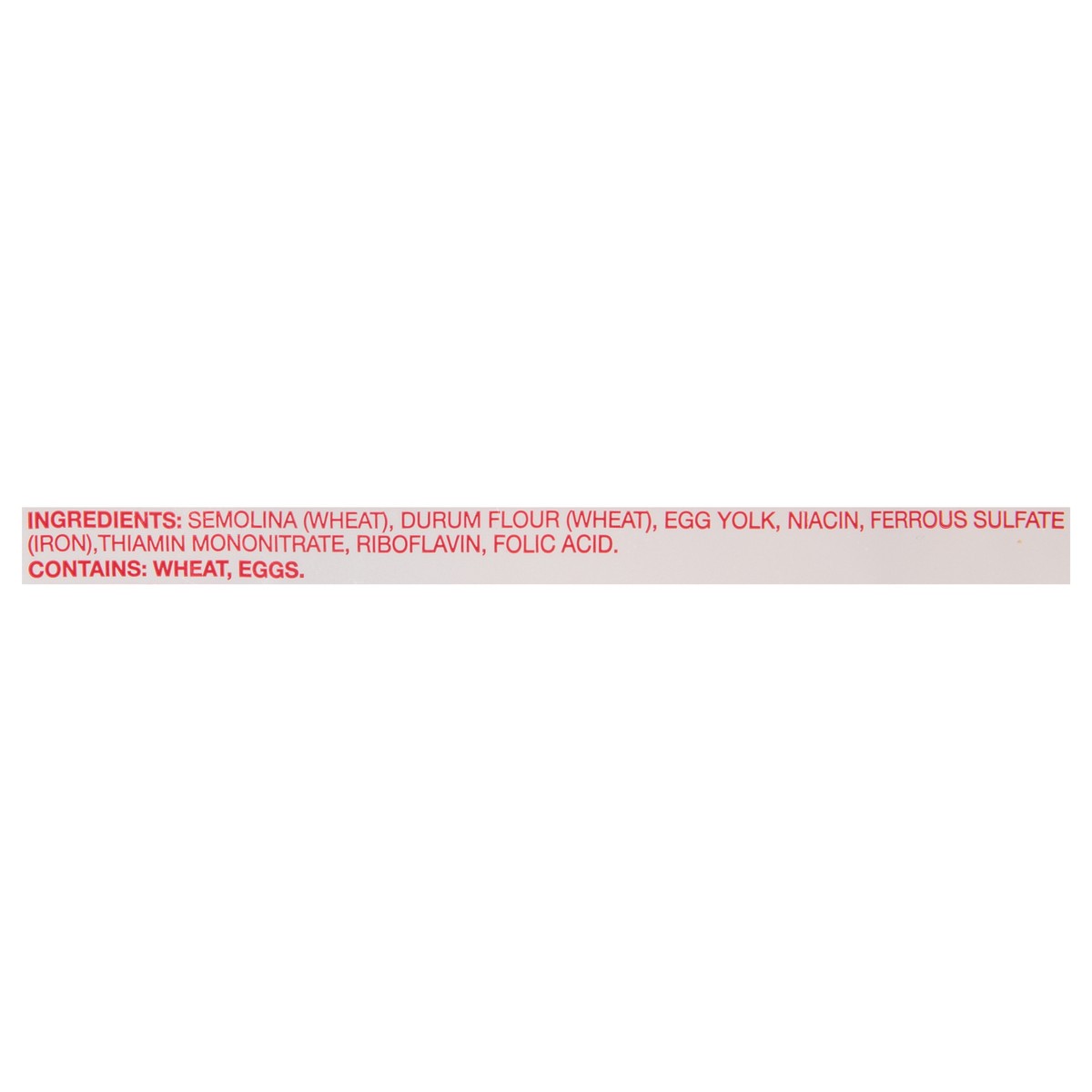 Semolina (Wheat), Durum Flour (Wheat), Egg Yolk, Niacin, Ferrous Sulfate (Iron), Thiamin Mononitrate, Riboflavin, Folic Acid.