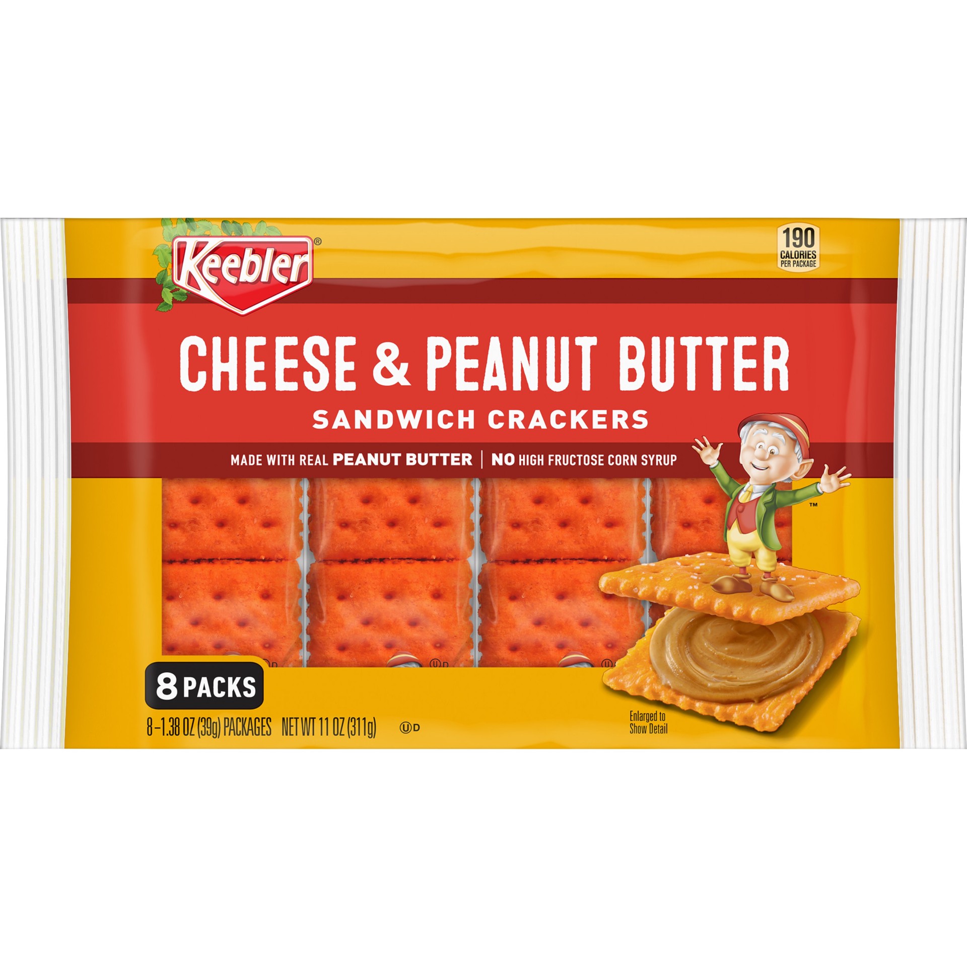 Keebler Cheese and Peanut Butter sandwich crackers are the real deal. These conveniently-packaged crackers feature a tempting combination of crunchy cheese crackers sandwiched around a tasty filling m…