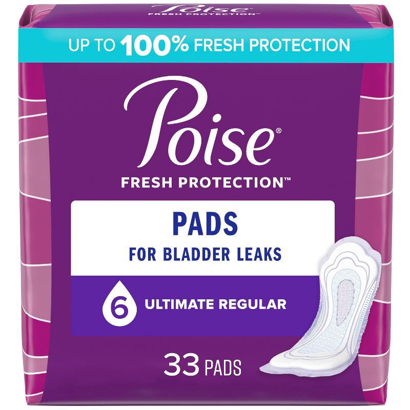Poise Incontinence & Postpartum Pads for Bladder Leaks, 6 Drop Ultimate Absorbency, Regular Length, 33 Count