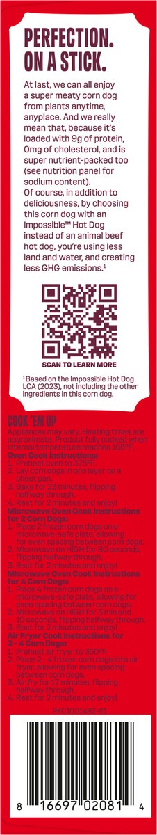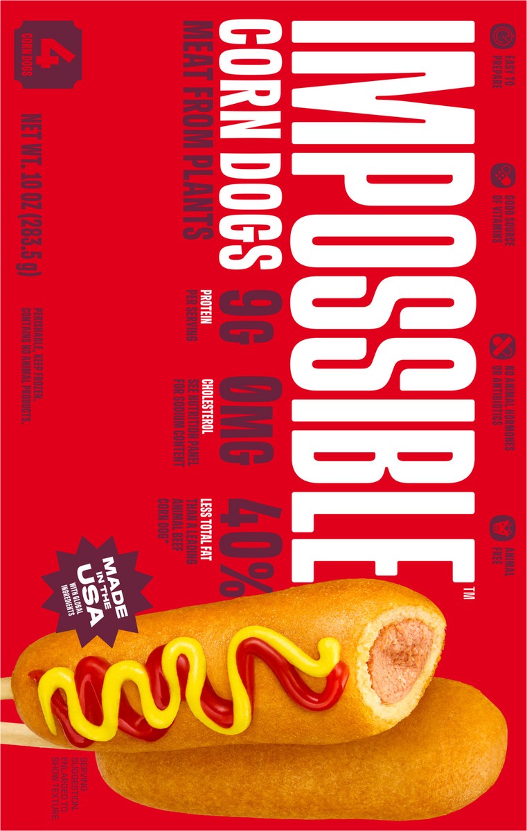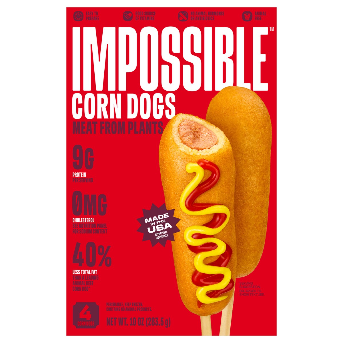 ImpossibleTM Corn Dogs Meat From Plants, Frozen, Fully Cooked, 4 Corn Dogs, 10 oz