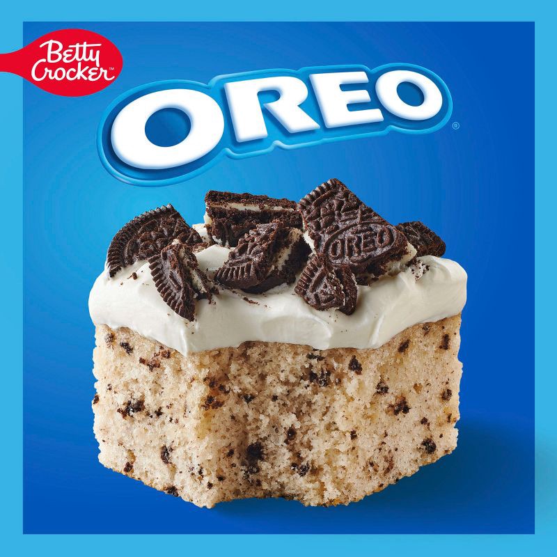 - BETTY CROCKER & OREO: Betty Crocker White Cake Mix with real OREO Cookie Pieces you can sprinkle into the batter before baking or sprinkle on top of the frosted cake