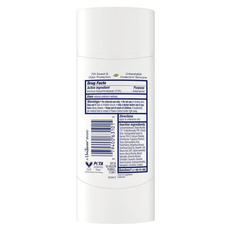 Dove Beauty Advanced Care Sheer Fresh 72-Hour Women's Antiperspirant & Deodorant Stick - 2.6oz: Aluminum Zirconium Protects, Dye-Free Formula