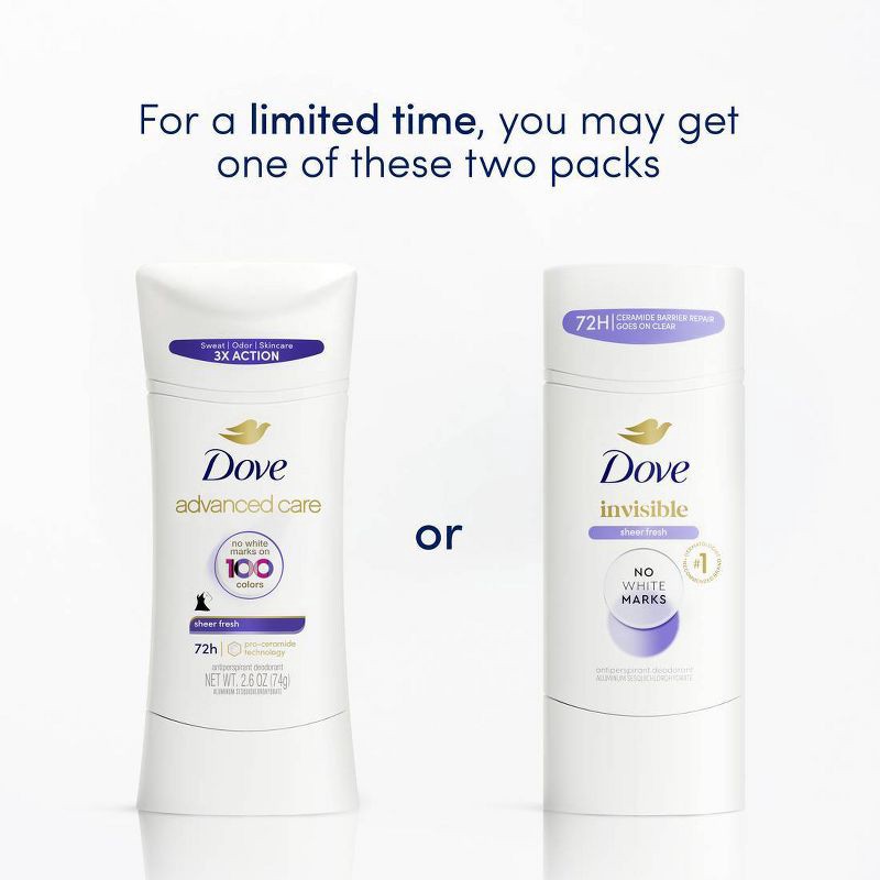 - CARES & PROTECTS: Dove Advanced Care Invisible Sheer Fresh Antiperspirant Deodorant Stick for beautifully soft, resilient skin